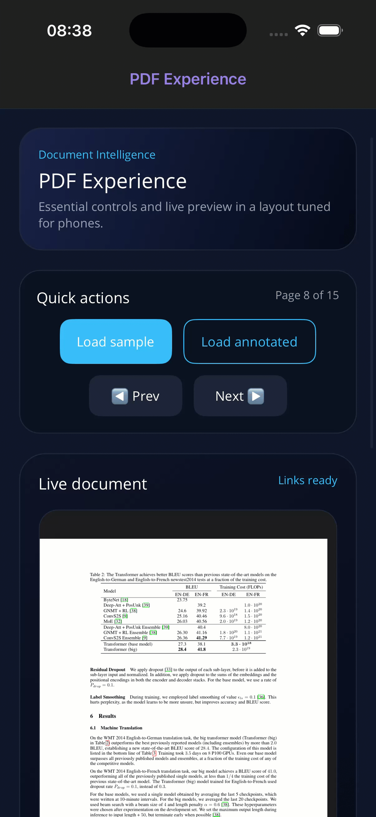 The performance benefits are noticeable. Scrolling through a 100+ page document feels smooth, memory management is handled by the native engines, and loading times are optimized by the platform itself. If you have ever tried to render a large PDF in a WebView and watched it stutter, you will appreciate the difference.